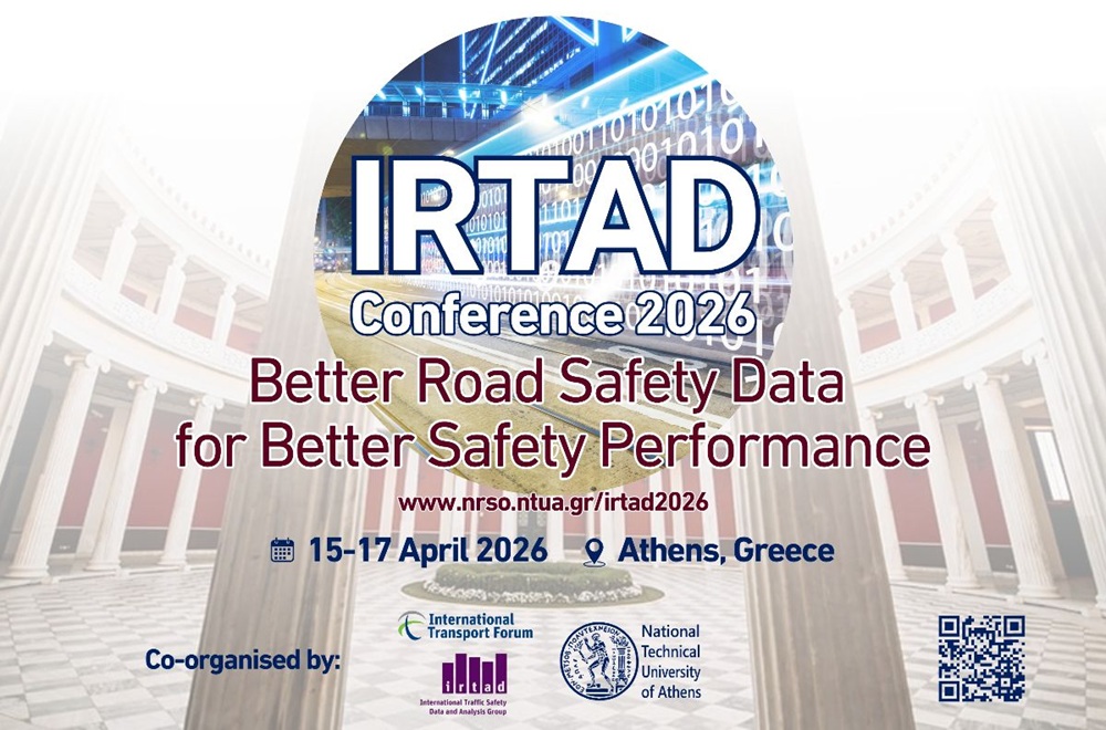 H Ομάδα Διεθνών Δεδομένων και Αναλύσεων Οδικής Ασφάλειας (IRTAD) του Διεθνούς Φόρουμ Μεταφορών (ITF/OECD) και ο Τομέας Μεταφορών και Συγκοινωνιακής Υποδομής του Εθνικού Μετσόβιου Πολυτεχνείου συνδιοργανώνουν το 8ο Διεθνές Συνέδριο IRTAD, με την υποστήριξη του Συλλόγου Ελλήνων Συγκοινωνιολόγων, με θέμα “Καλύτερα Δεδομένα Οδικής Ασφάλειας για Καλύτερες Επιδόσεις Ασφάλειας”. Το Συνέδριο θα διεξαχθεί στην Αθήνα στις 15-17 Απριλίου 2026 στο χώρο του Μεγάρου Ζαππείου.