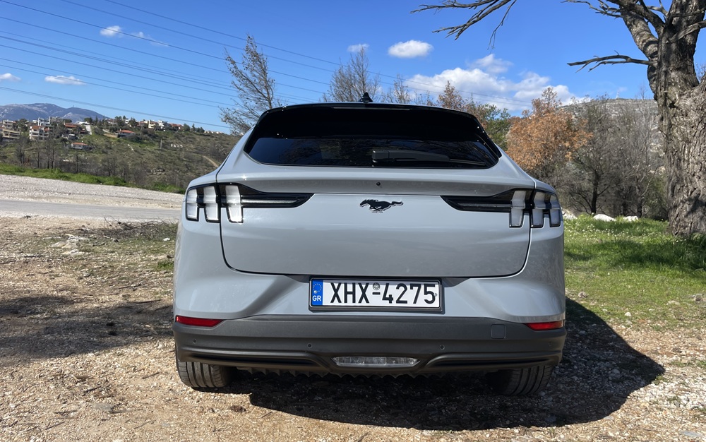Η ανανεωμένη Mustang Mach-E θα λέγαμε ότι διατηρεί στο ακέραιο την επιβλητικότητα που προκύπτει από τις δυναμικές γραμμές του αμαξώματος, την κουπέ αισθητική και τις πληθωρικές διαστάσεις.