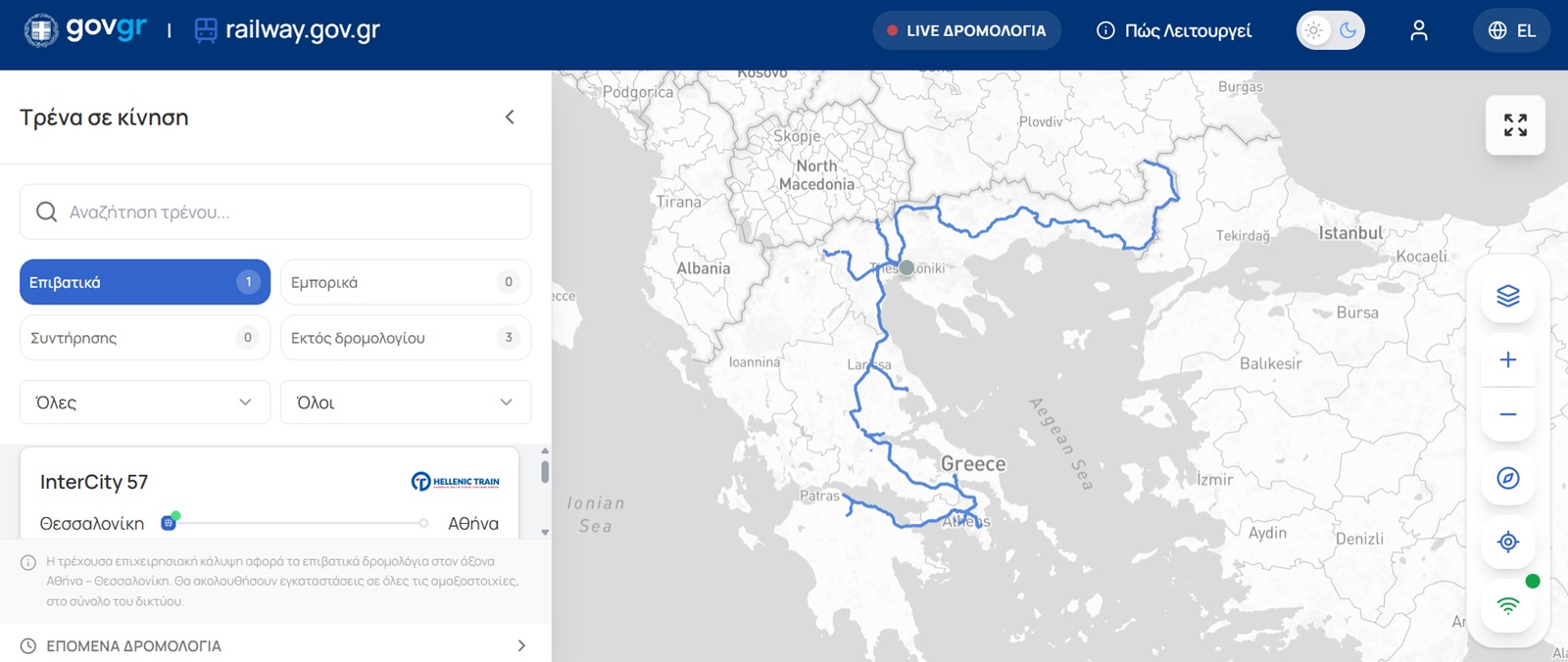 Οι πολίτες έχουν πρόσβαση στην παρακολούθηση των επιβατικών τρένων που κινούνται στον άξονα Αθήνα – Θεσσαλονίκη, με σταδιακή επέκταση τους επόμενους δύο μήνες σε ολόκληρο το δίκτυο.