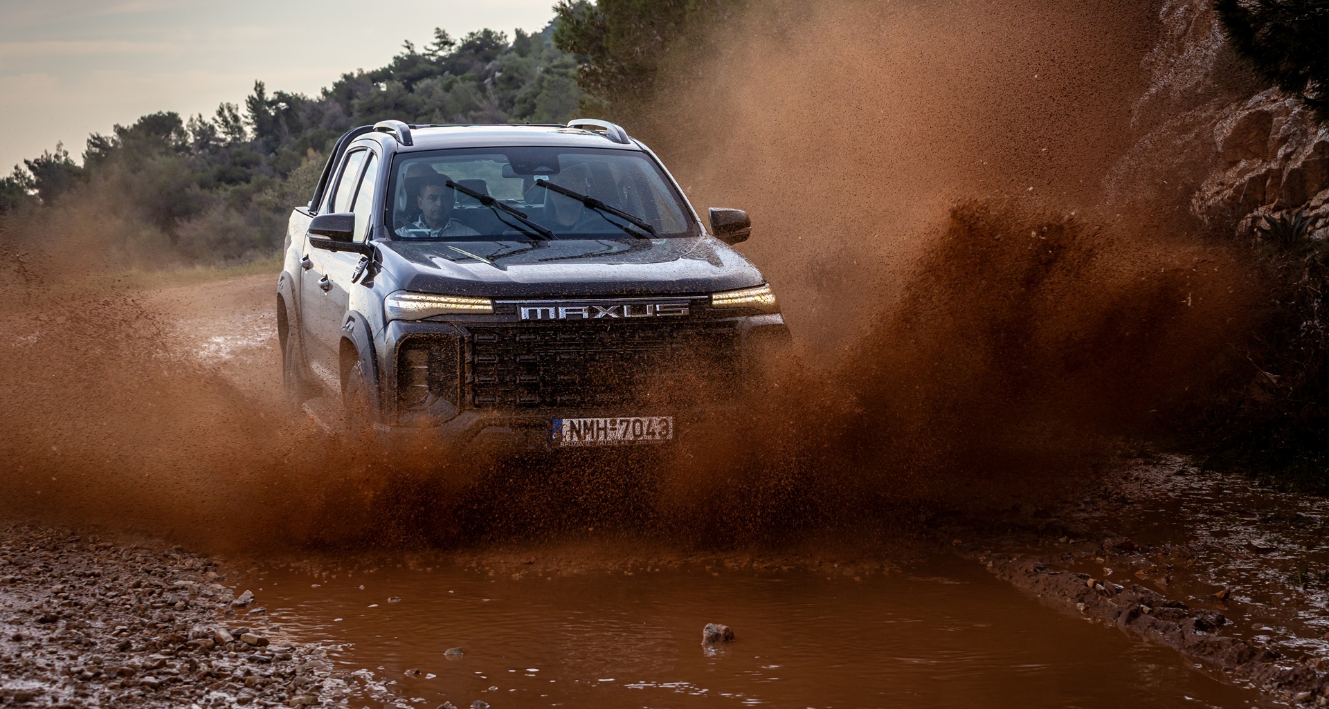 Στην άσφαλτο το Maxus T60 Max κινείται με απίστευτη άνεση κρύβοντας τις διαστάσεις του ενώ τα μεγάλα ελαστικά απορροφούν τις όποιες κακοτεχνίες στο οδόστρωμα. Η οδήγηση στο ορεινό δίκτυο της Αττικής περιελάβανε χώμα και λάσπη όπου το κινεζικό μοντέλο ξεδίπλωνε τις «αρετές» του.