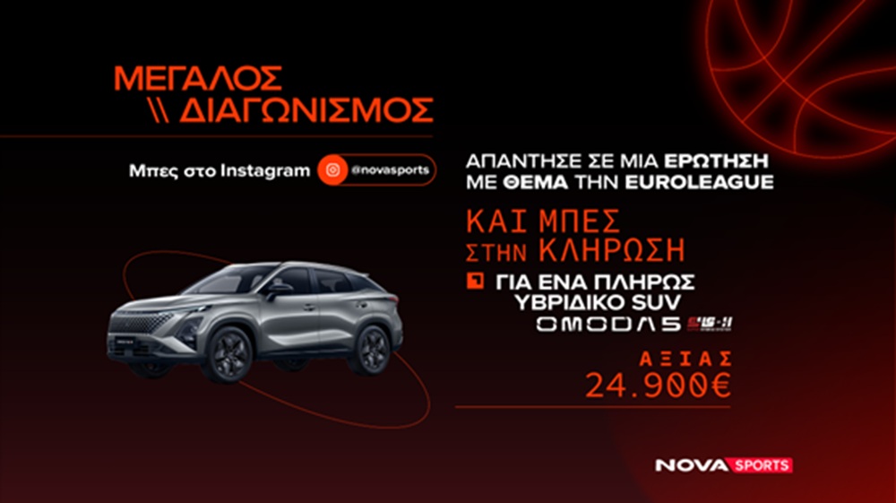 Η OMODA & JAECOO Ελλάδας, σε συνεργασία με τo Novasports.gr, έχει προκηρύξει έναν μεγάλο διαγωνισμό με αφορμή τη φετινή EuroLeague, προσφέροντας στο κοινό την ευκαιρία να διεκδικήσει ένα σύγχρονο, πλήρως υβριδικό SUV OMODA 5 SHS-H.