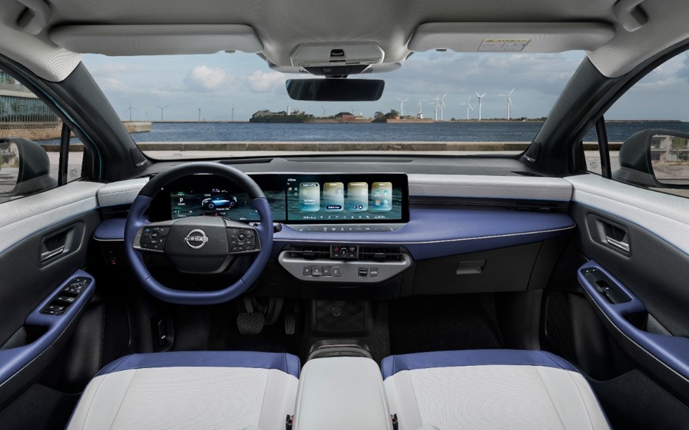 Στο εσωτερικό, δύο οθόνες 14,3” (πίνακας οργάνων και κεντρική) διαμορφώνουν ένα πλήρως ψηφιακό cockpit, ενώ η εφαρμογή NissanConnect Services προσφέρει απομακρυσμένη πρόσβαση σε έλεγχο της μπαταρίας, προετοιμασία κλιματισμού και προγραμματισμό διαδρομών — διασφαλίζοντας ότι ο οδηγός παραμένει εξίσου συνδεδεμένος εντός και εκτός οχήματος.