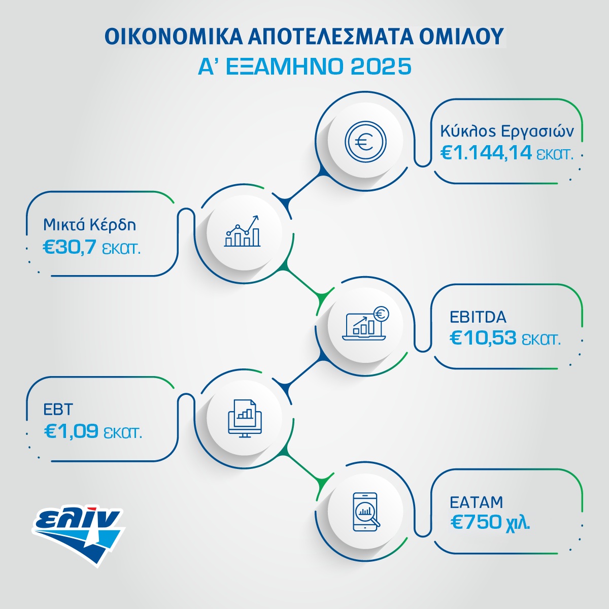 Μειωμένο τζίρο, πτώση των καθαρών κερδών περιελάμβαναν τα οικονομικά αποτελέσματα του ομίλου ελίν για το πρώτο εξάμηνο του 2025.